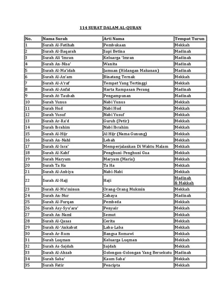 Nama2 Surat Dalam Al Quran Dan Artinya - Daftar Nama Surah Alquran Dan Jumlah Ayatnya Pdf : Pada surat ini dibahas tentang harta rikaz.. Pada surat ini dibahas tentang harta rikaz.